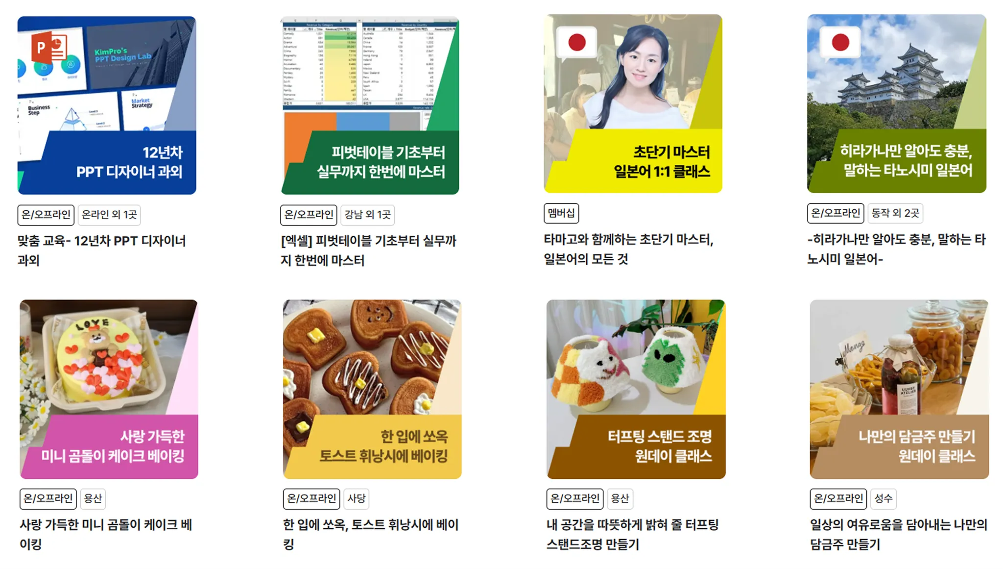 예시 : 원데이, 1:1클래스, 강남, 부산 등