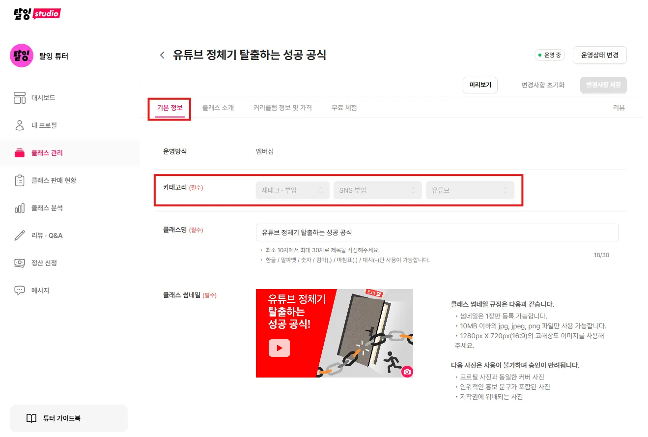 이미 등록된 클래스와 동일한 대표이미지(썸네일)를 사용하는 경우