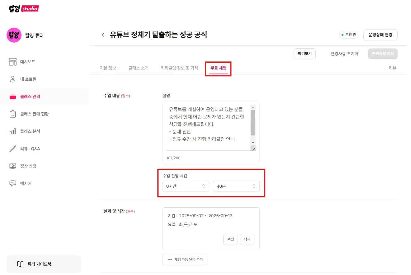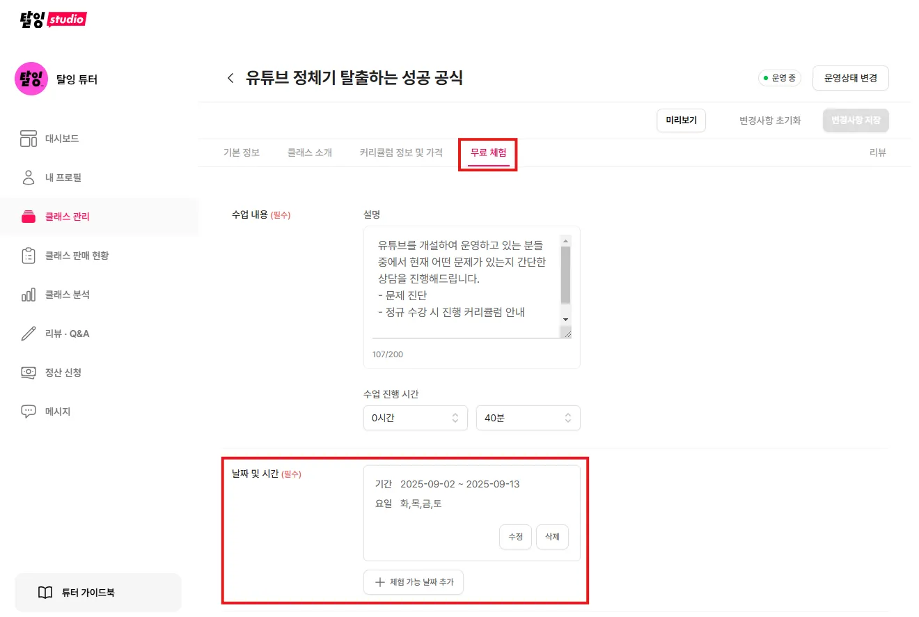 무료 체험으로 제공되는 클래스의 수업 내용에 대해 상세히 설명해주세요.
