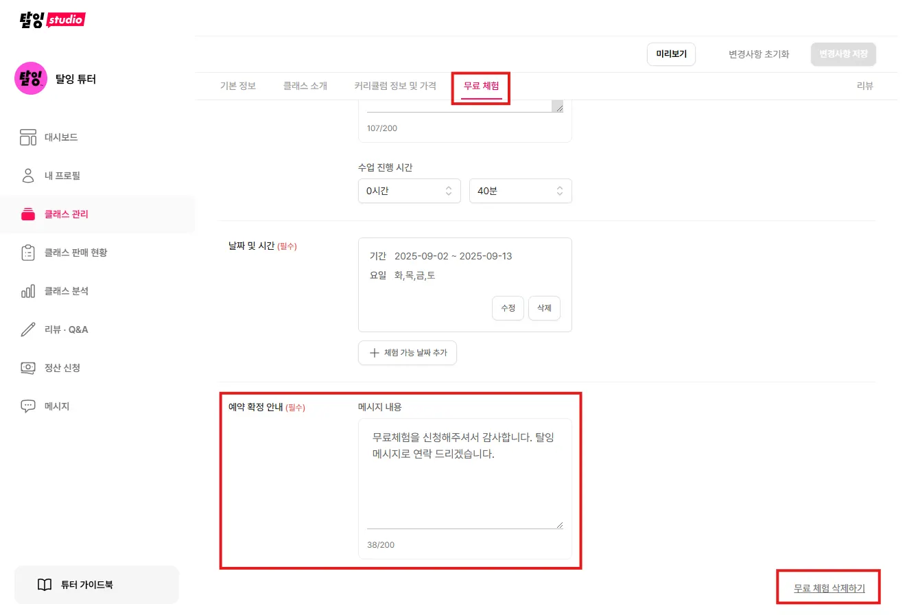 무료 체험을 신청하신 수강생님들께 안내할 내용을 기재해주세요.