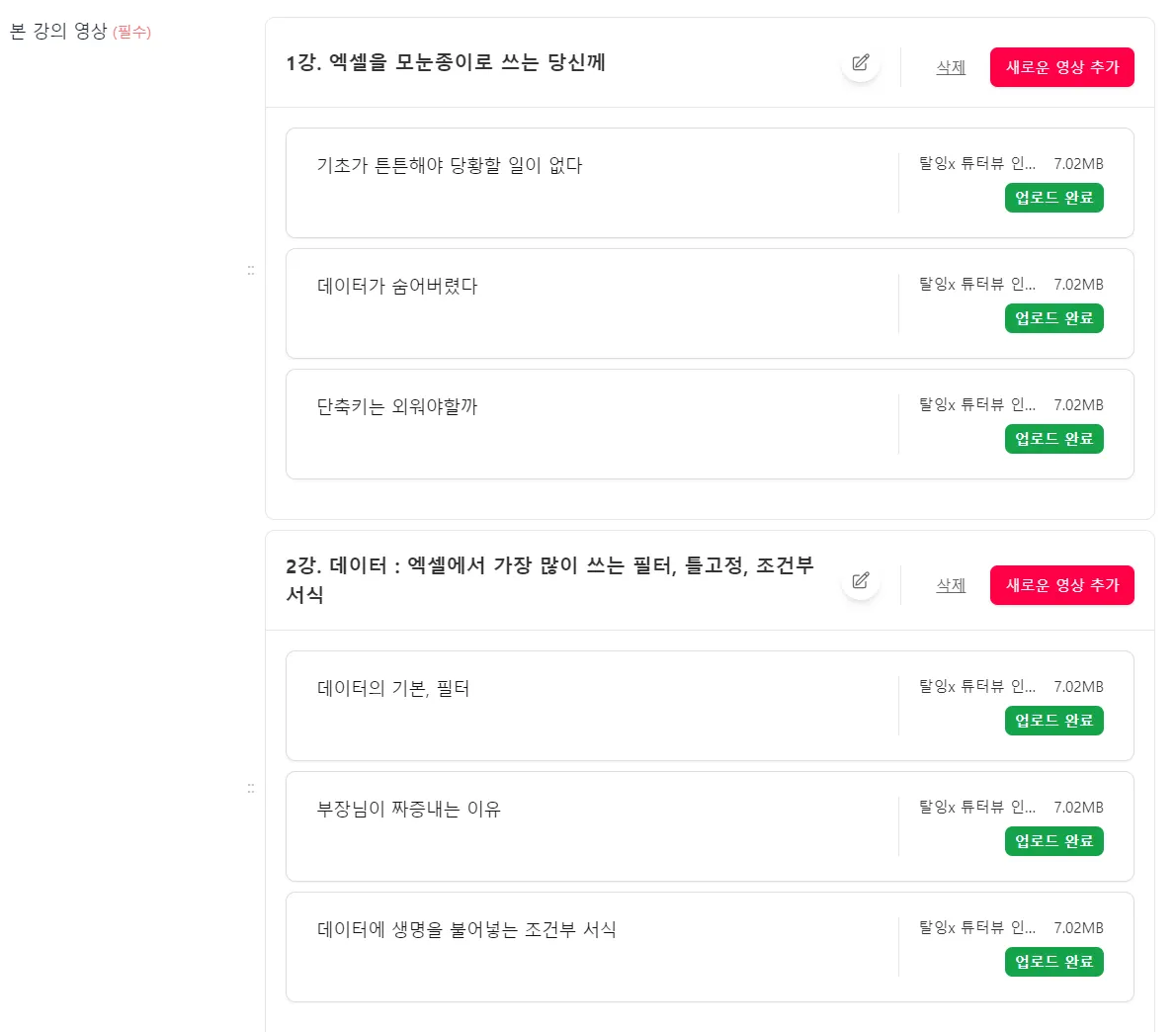 커리큘럼에 따라 챕터로 분할하여 등록해 주세요.