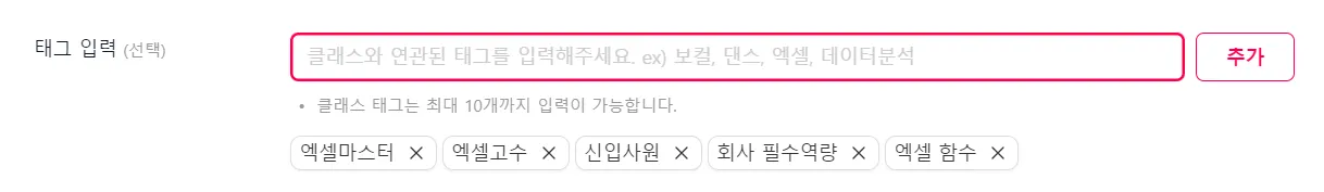 클래스 제목에 포함되어 있지 않은 검색 키워드를 최대 10개 추가할 수 있어요.
