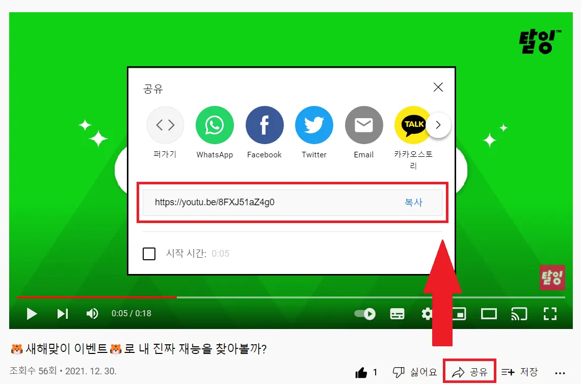 유튜브 동영상 페이지에서 공유 클릭 후 노출되는 링크를 복사하여 등록해 주세요.