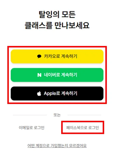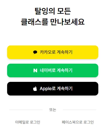 현재 탈잉은 5가지 방법으로 회원가입 후 이용할 수 있어요.