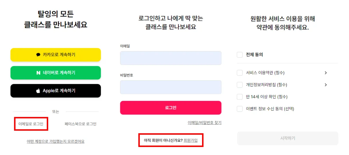 PC : 탈잉 홈페이지 > 이메일 로그인 > 회원가입