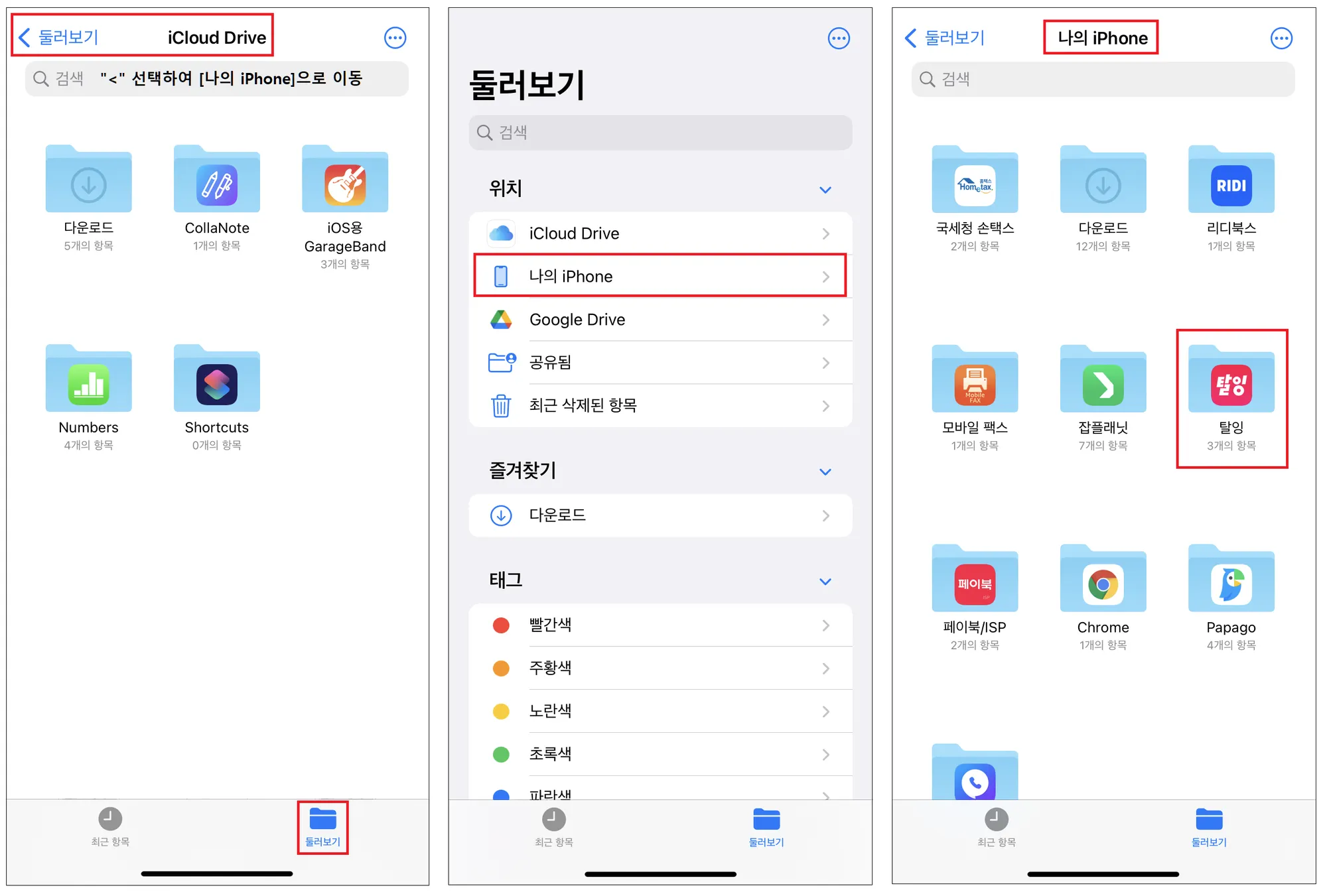 다운로드 버튼을 클릭하면 아이폰 기본 APP인 “파일 > 둘러보기 > 나의 iPhone > 탈잉 폴더”에 자동으로 전자책이 저장돼요.
