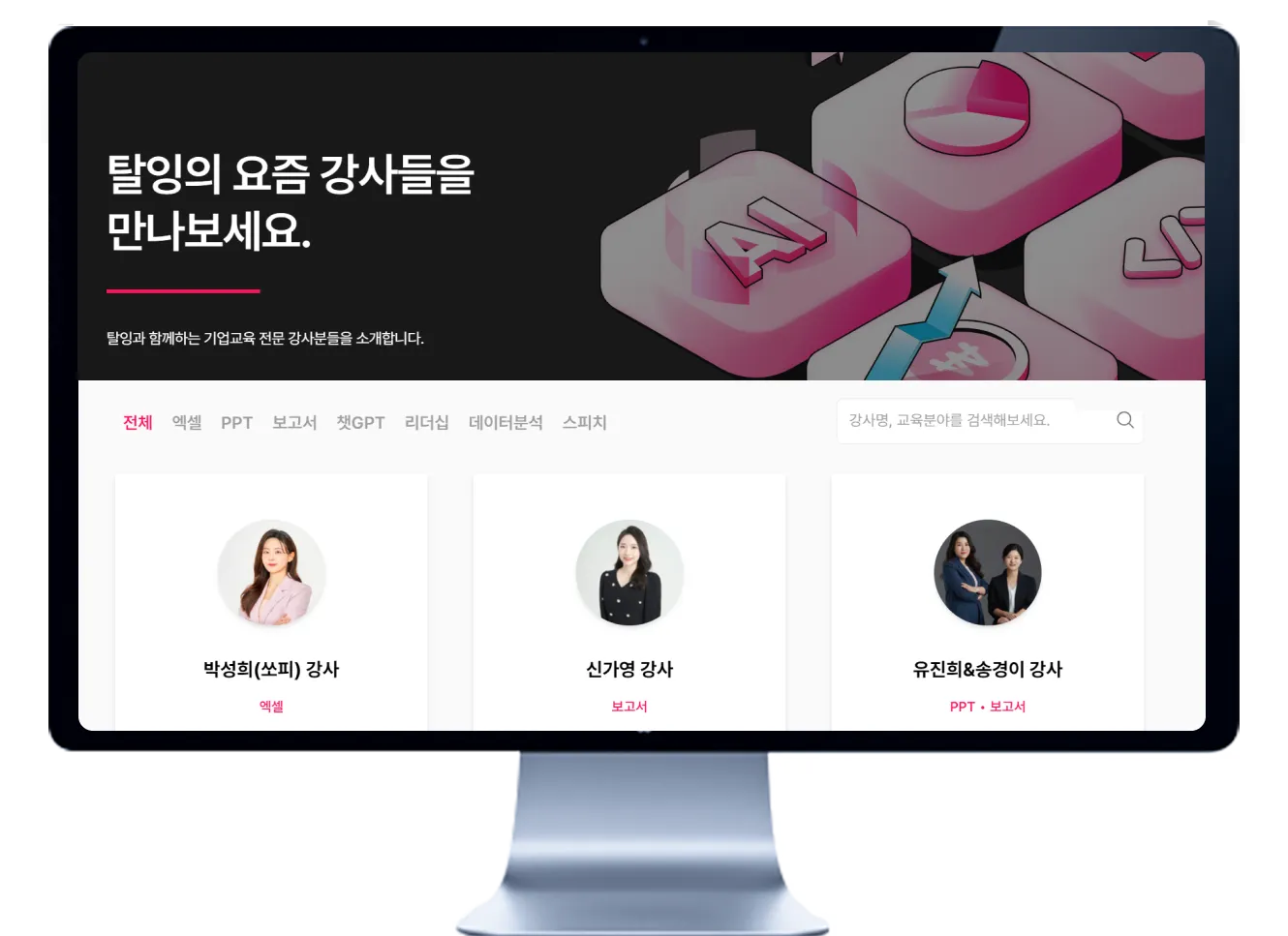 등록된 프로필은 탈잉 기업교육 서비스 홈페이지에 업로드 되어, 다양한 기업에게 강사님의 프로필이 노출됩니다!