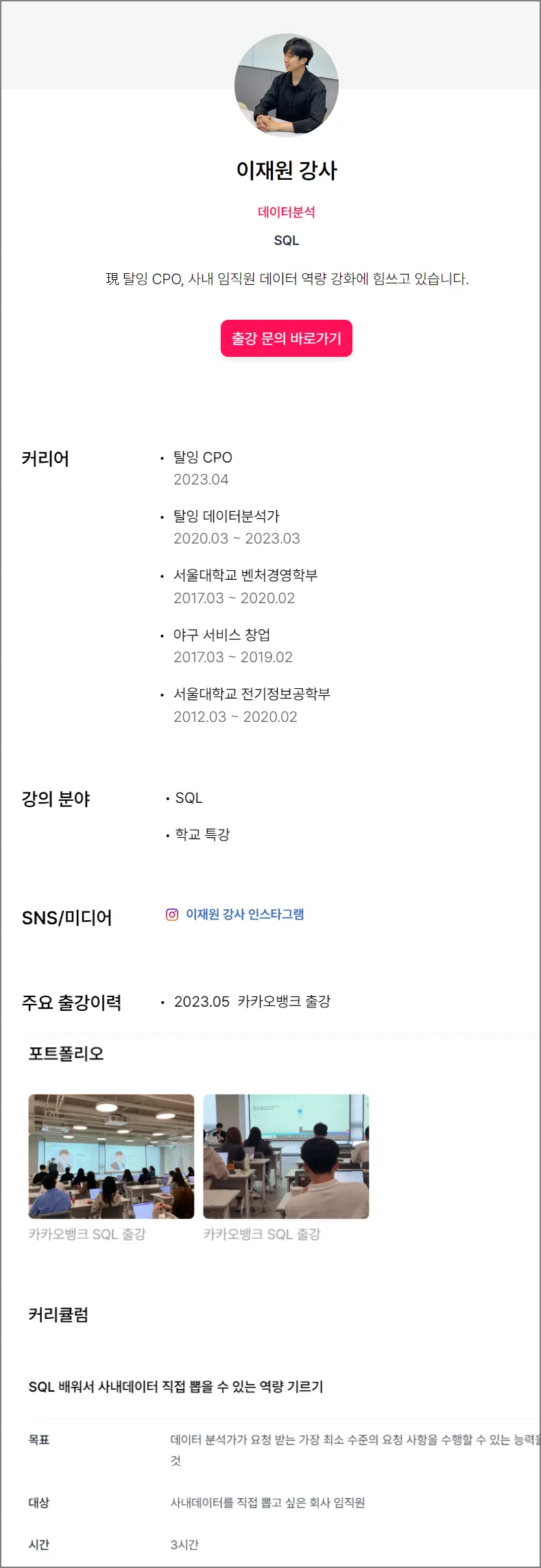 5. 출강 강사 등록시 ‘강사 개별 프로필’ 제작